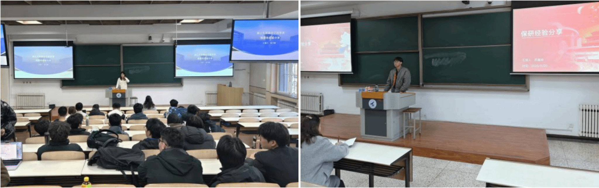支部邀请大四学生邓益凡、张瀚文、张乃珺、涂弘博和苏晨坤等5位已成功保研至清华大学、浙江大学及知名科研院所的学长学姐作为分享嘉宾。他们结合自身经历,围绕“保研政策解读与时间线规划”“专业成绩提升与核心竞争力塑造”“夏令营及预推免需要注意的问题与面试经验”等关键内容展开细致讲解,既分享了材料准备、院校选择等方面的实用方法,也针对同学们普遍关心的“如何平衡科研与课程学习”“研究所的科研优势”等问题给予详尽解答。互动环节气氛热烈,嘉宾们的耐心解答帮助在场学生对保研之路有了更清晰的认识,有效缓解了焦虑情绪。
