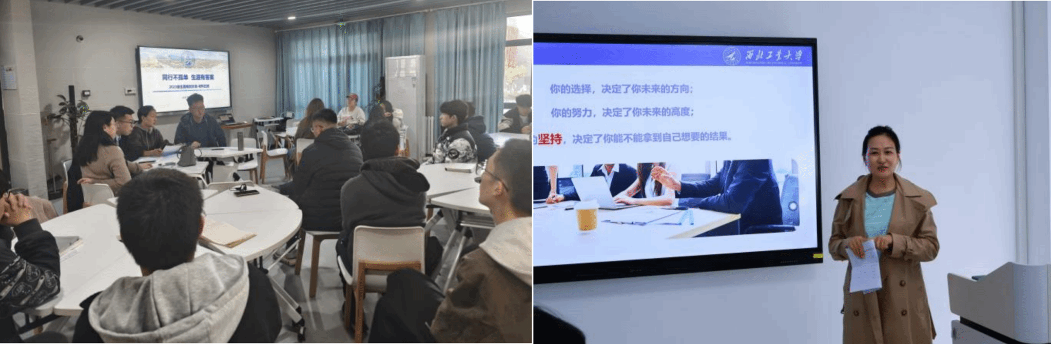 学院领导从学科趋势与行业需求出发,分析不同发展路径的特点;班主任依据专业培养目标,针对学生学业基础提供具体建议;辅导员关注学生心理状态,引导大家理性看面对待选择中的困惑;留学指导老师则系统解读了主要目标院校的申请要求、语言准备要点及近期留学形势。指导团队采取倾听需求、分析问题、提供方案的模式,协助学生梳理自身优势与不足,明确后续行动计划。